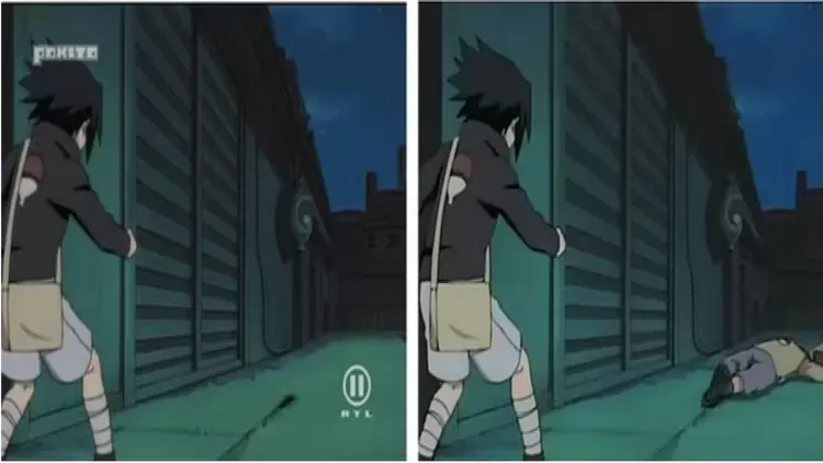 Pembantaian klan Uchiha adalah fondasi emosional karakter Sasuke. Versi asli menampilkan visual yang kelam dan traumatis. Namun di banyak versi internasional, darah dan jasad dihilangkan. Sasuke hanya berjalan di ruangan kosong yang terlalu rapi, membuat tragedi besar itu terasa dingin dan kurang menghantui.